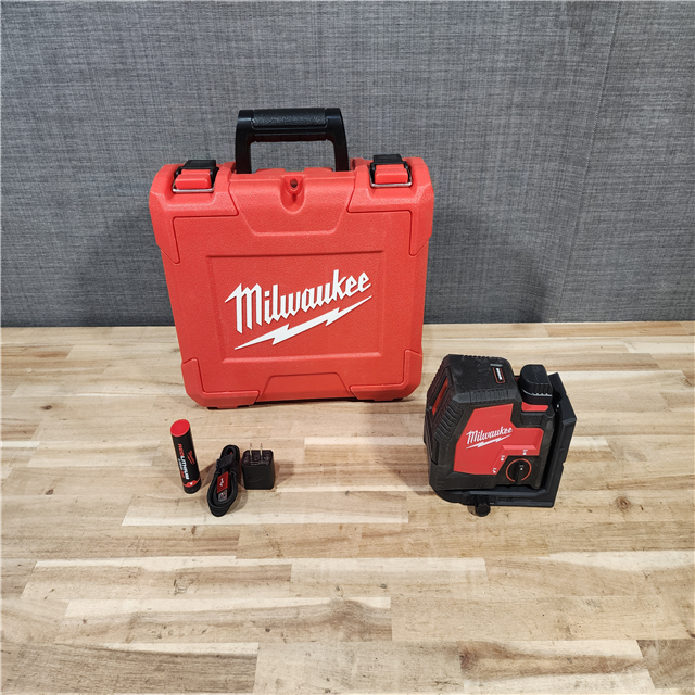 HOUSTON LOCATION - AS-IS Milwaukee 100 ft. REDLITHIUM Lithium-Ion USB Green Rechargeable Cross Line Laser Level with Charger