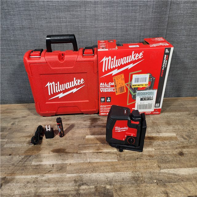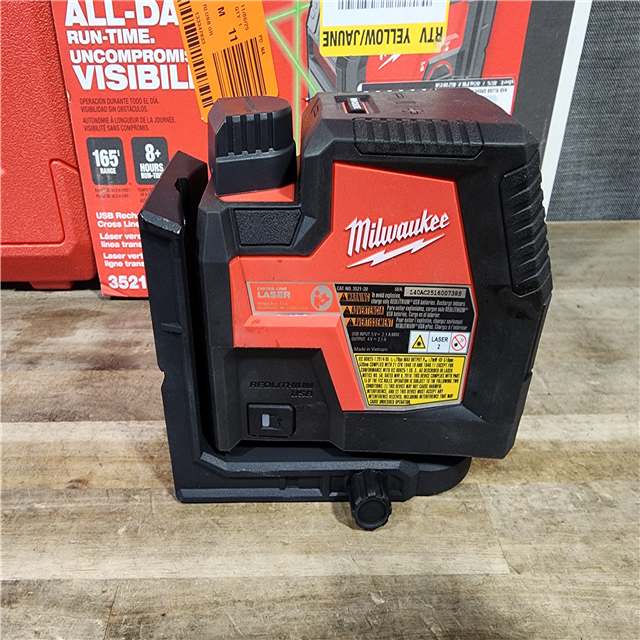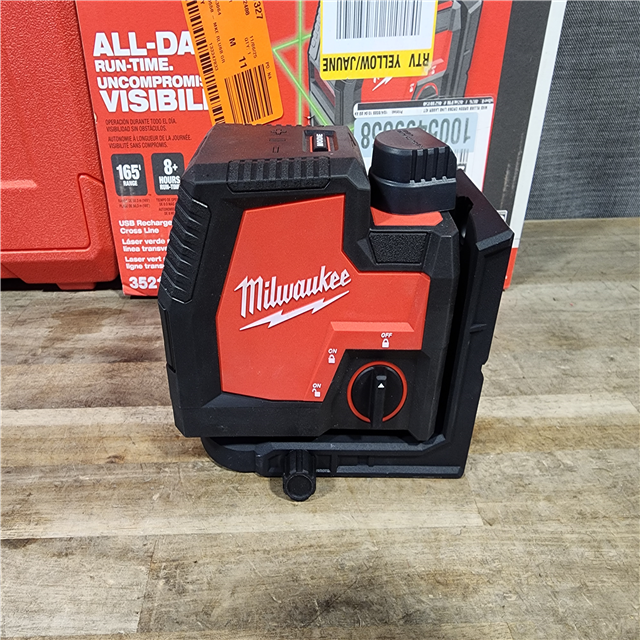 HOUSTON LOCATION - AS-IS MILWAUKEE 100 ft. REDLITHIUM Lithium-Ion USB Green Rechargeable Cross Line Laser Level