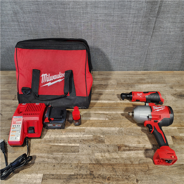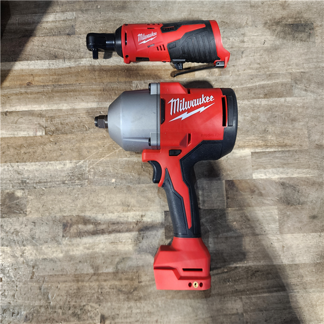 HOUSTON LOCATION - AS-IS Milwaukee 12/18V Lithium-Ion Cordless 3/8 in. Ratchet and 1/2 in. High Torque Impact Wrench with Friction Ring Combo Kit