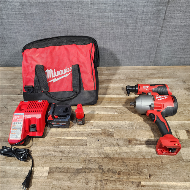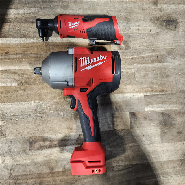 HOUSTON LOCATION - AS-IS Milwaukee 12/18V Lithium-Ion Cordless 3/8 in. Ratchet and 1/2 in. High Torque Impact Wrench with Friction Ring Combo Kit