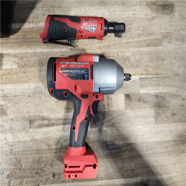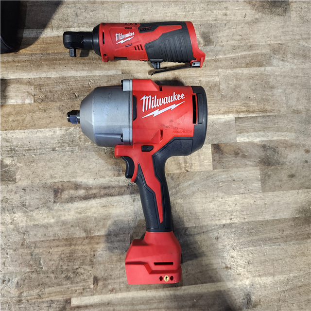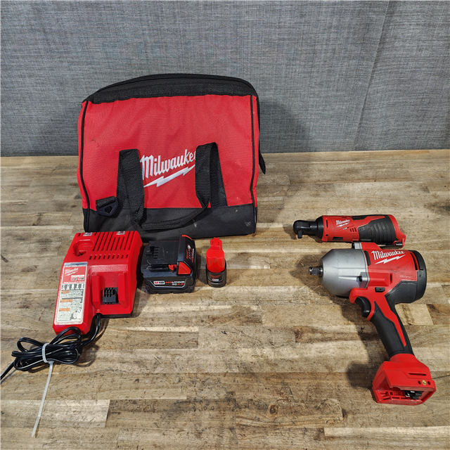 HOUSTON LOCATION - AS-IS Milwaukee 12/18V Lithium-Ion Cordless 3/8 in. Ratchet and 1/2 in. High Torque Impact Wrench with Friction Ring Combo Kit