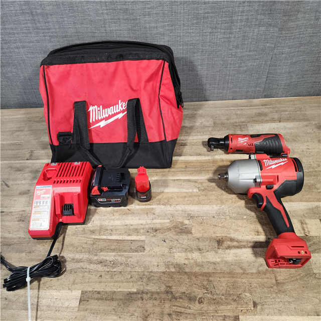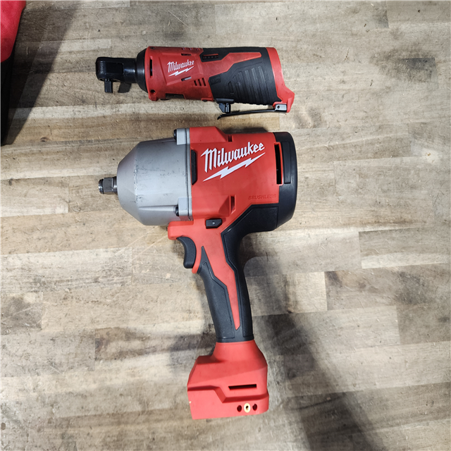 HOUSTON LOCATION - AS-IS Milwaukee 12/18V Lithium-Ion Cordless 3/8 in. Ratchet and 1/2 in. High Torque Impact Wrench with Friction Ring Combo Kit