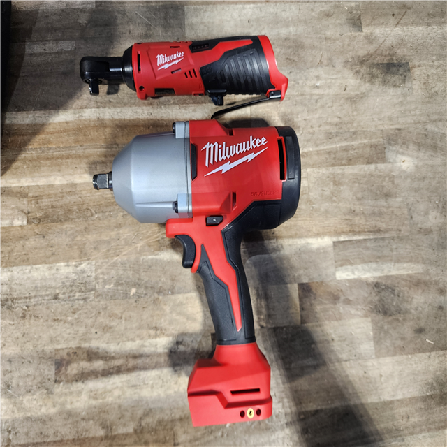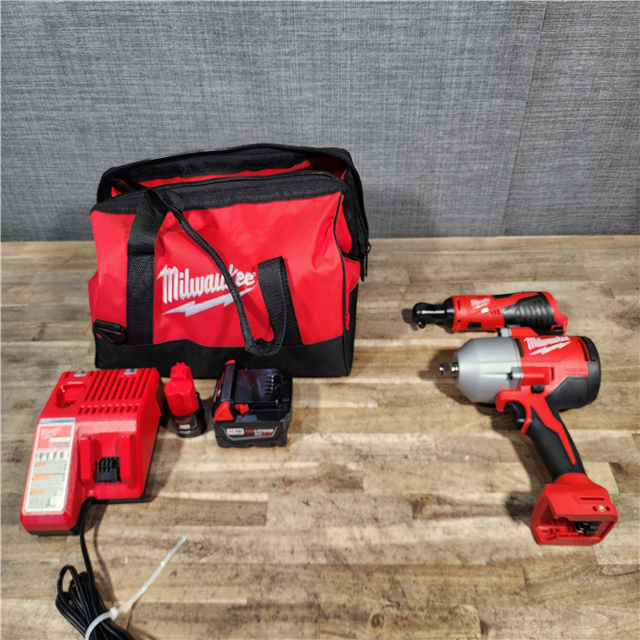 HOUSTON LOCATION - AS-IS Milwaukee 12/18V Lithium-Ion Cordless 3/8 in. Ratchet and 1/2 in. High Torque Impact Wrench with Friction Ring Combo Kit