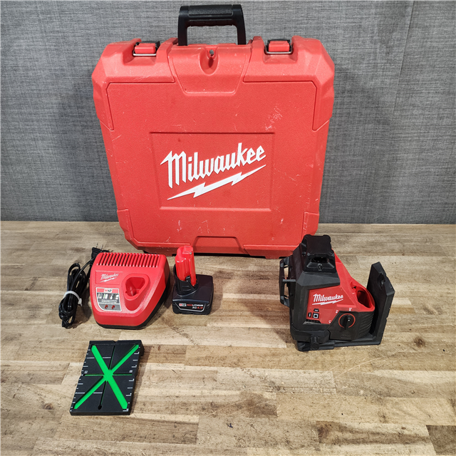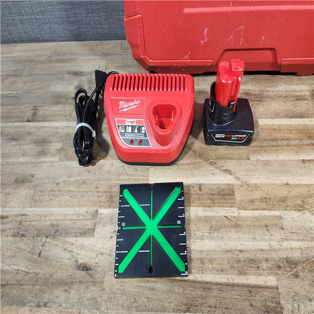 HOUSTON LOCATION - AS-IS Milwaukee 12-Volt Lithium-Ion Cordless Green 250 ft. 3-Plane Laser Level Kit