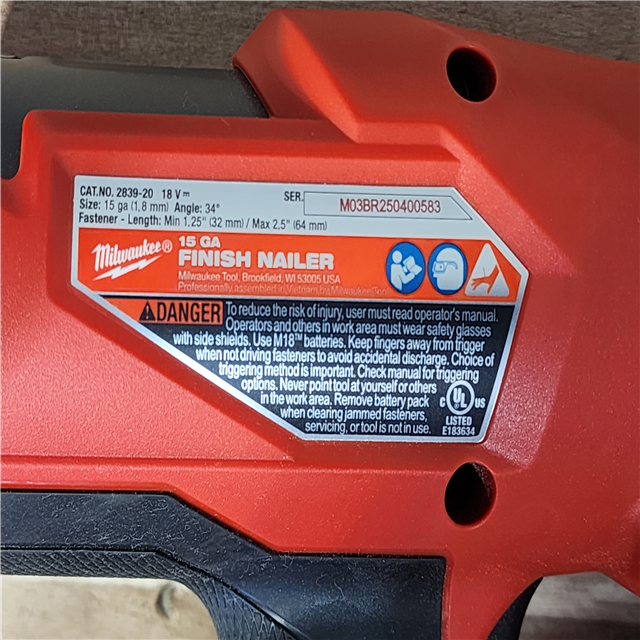 HOUSTON LOCATION - AS-IS MILWAUKEE 15 GAUGE FINISH NAILER
