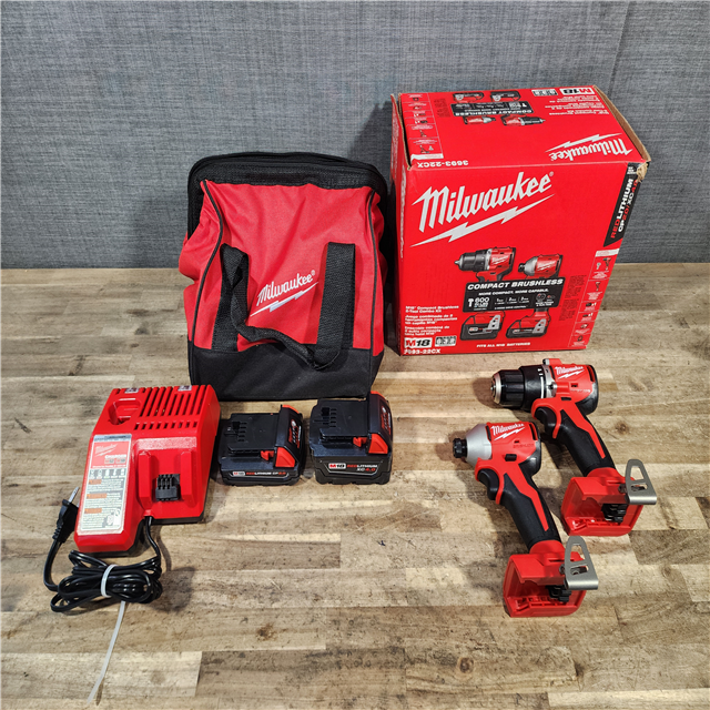 HOUSTON LOCATION - AS-IS Milwaukee 18-Volt Lithium-Ion Brushless Cordless Compact Hammer Drill/Impact Combo Kit