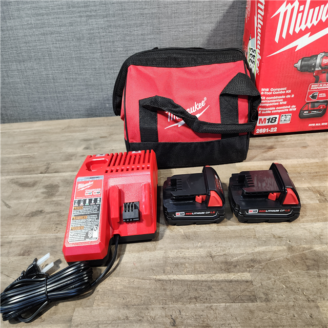 HOUSTON LOCATION - AS-IS Milwaukee 18V Cordless Brushed 2-Tool Drill/Driver and Impact Driver Kit