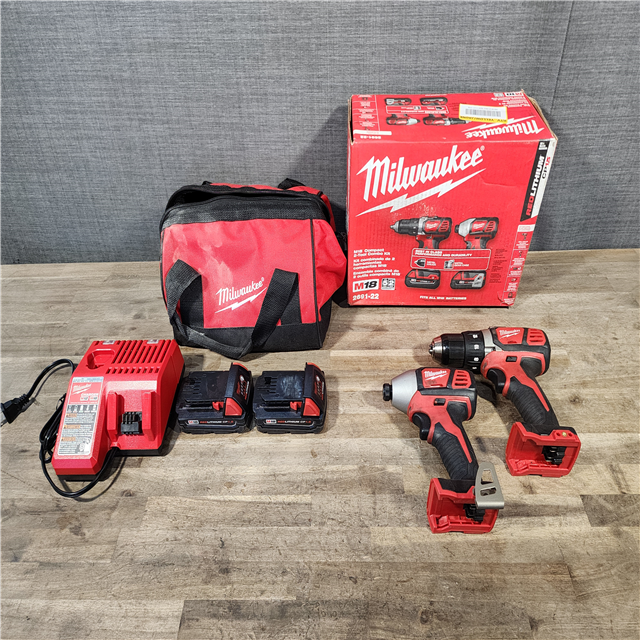 HOUSTON LOCATION - AS-IS Milwaukee 18V Cordless Brushed 2-Tool Drill/Driver and Impact Driver Kit