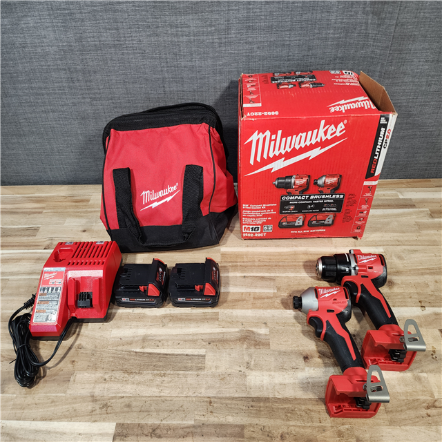HOUSTON LOCATION - AS-IS Milwaukee 18V Lithium-Ion Brushless Cordless Compact Drill/Impact Combo Kit