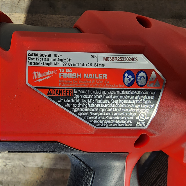 HOUSTON LOCATION - AS-IS Milwaukee 2839-20 M18 FUEL 15 Ga. 18 Volt Brushless Angled Finish Nailer (TOOL ONLY)