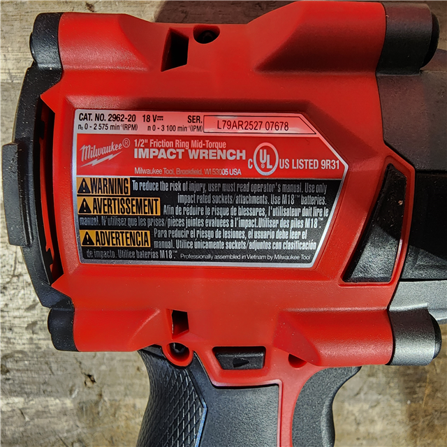 HOUSTON LOCATION - AS-IS Milwaukee 2962-20 M18 18V Fuel 1/2 Mid-Torque Impact Wrench Cordless Lithium-Ion Brushless (Tool-Only)