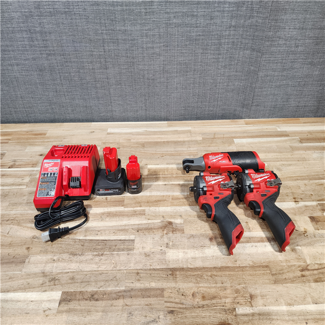 HOUSTON LOCATION - AS-IS MILWAUKEE 3 TOOL COMBO KIT W/ (2) BATTERY & CHARGER