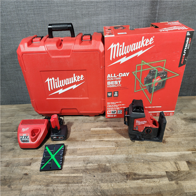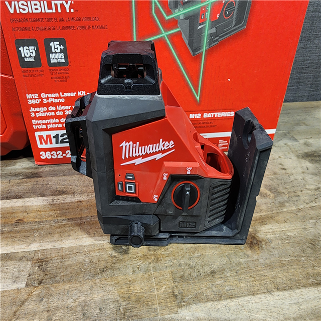 HOUSTON LOCATION - AS-IS Milwaukee-3632-21 M12 Green Beam Laser 360° 3-Plane Kit