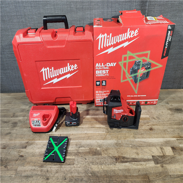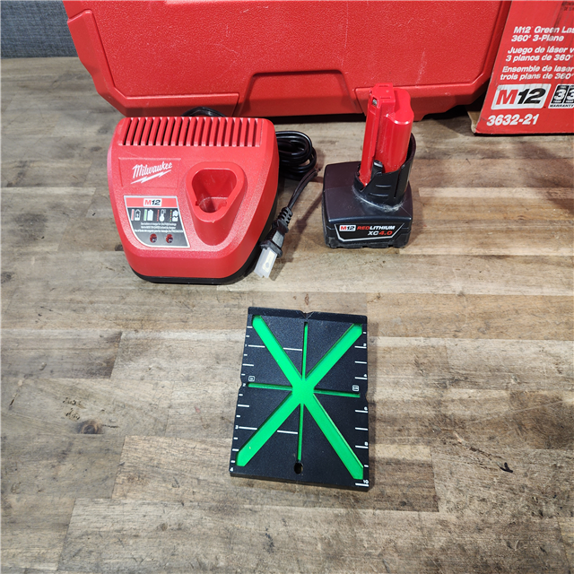 HOUSTON LOCATION - AS-IS Milwaukee-3632-21 M12 Green Beam Laser 360° 3-Plane Kit