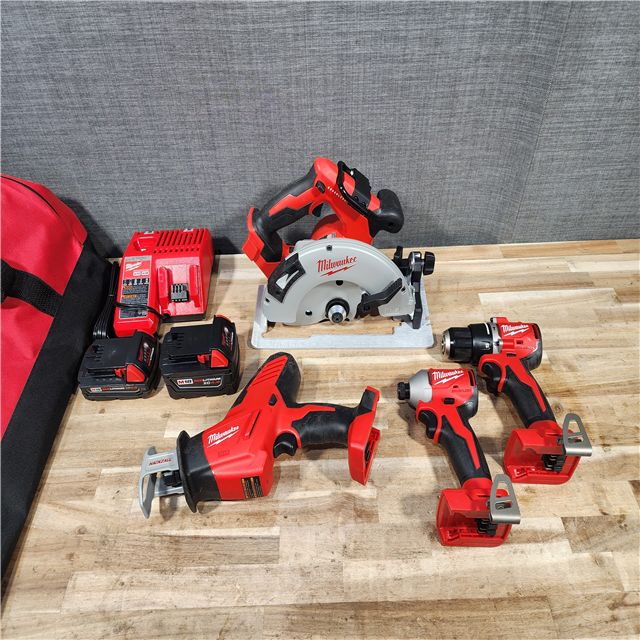 HOUSTON LOCATION - AS-IS MILWAUKEE 4 TOOL COMBO KIT W/ (2) BATTERY & CHARGER