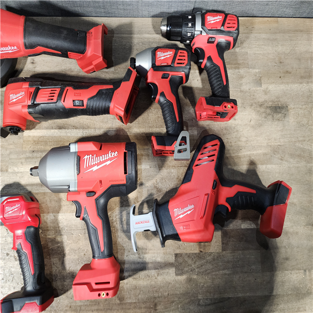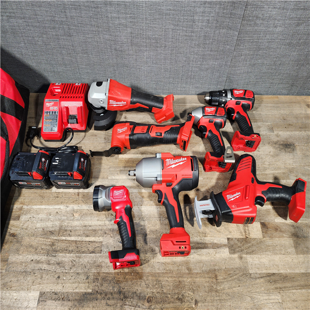 HOUSTON LOCATION - AS-IS MILWAUKEE 7 TOOL COMBO KIT W/ (2) BATTERY & CHARGER