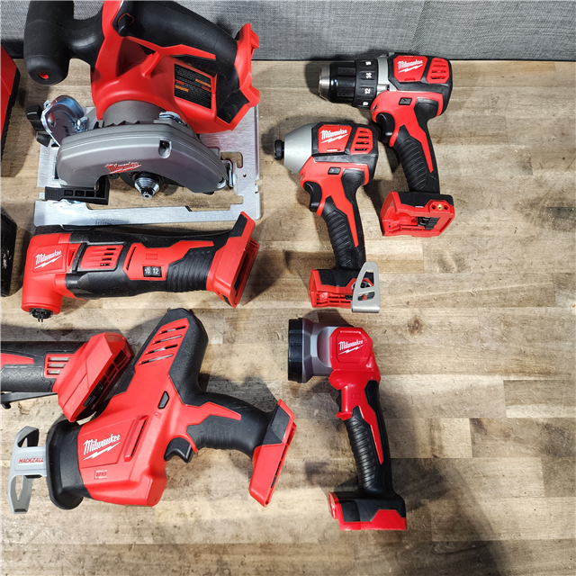 HOUSTON LOCATION - AS-IS MILWAUKEE 7 TOOL COMBO KIT W/ (2) BATTERY & CHARGER