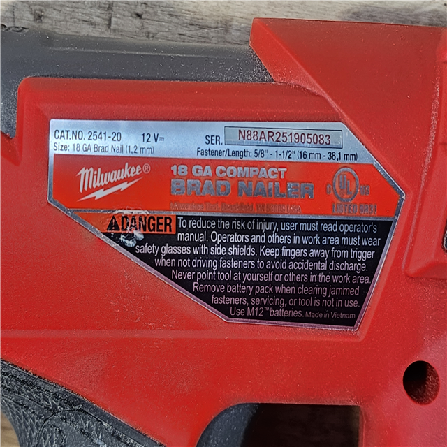 HOUSTON LOCATION - AS-IS Milwaukee FUEL 12-Volt Lithium-Ion Brushless Cordless 18-Gauge 1-1/2 in. Compact Brad Nailer (Tool Only)