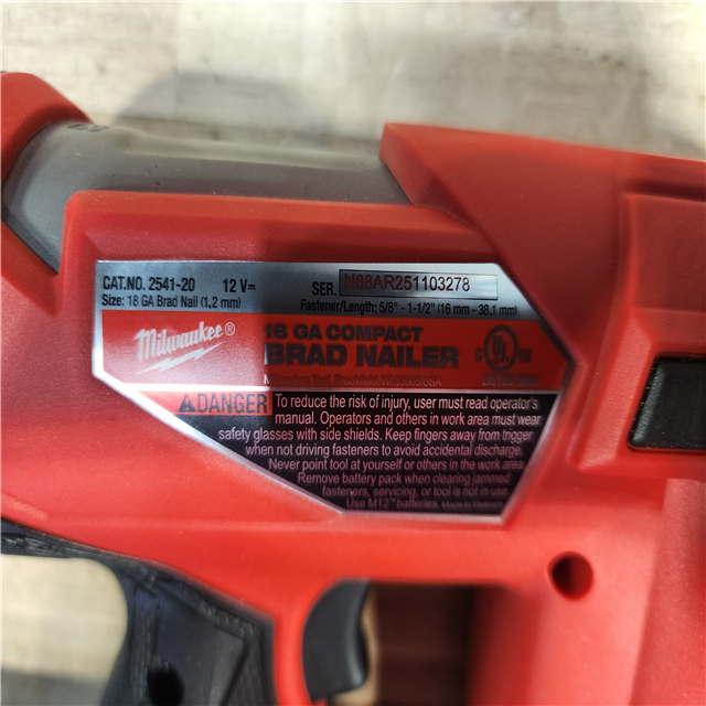 HOUSTON LOCATION - AS-IS Milwaukee FUEL 12-Volt Lithium-Ion Brushless Cordless 18-Gauge 1-1/2 in. Compact Brad Nailer (Tool Only)