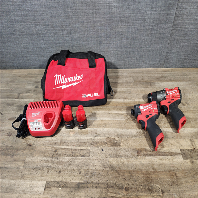 HOUSTON LOCATION - AS-IS Milwaukee FUEL 12-Volt Lithium-Ion Brushless Cordless Hammer Drill and Impact Driver Combo Kit