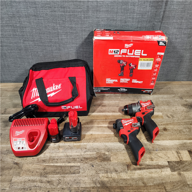 HOUSTON LOCATION - AS-IS Milwaukee FUEL 12-Volt Lithium-Ion Brushless Cordless Hammer Drill and Impact Driver Combo Kit