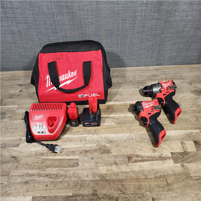 HOUSTON LOCATION - AS-IS Milwaukee FUEL 12-Volt Lithium-Ion Brushless Cordless Hammer Drill and Impact Driver Combo Kit