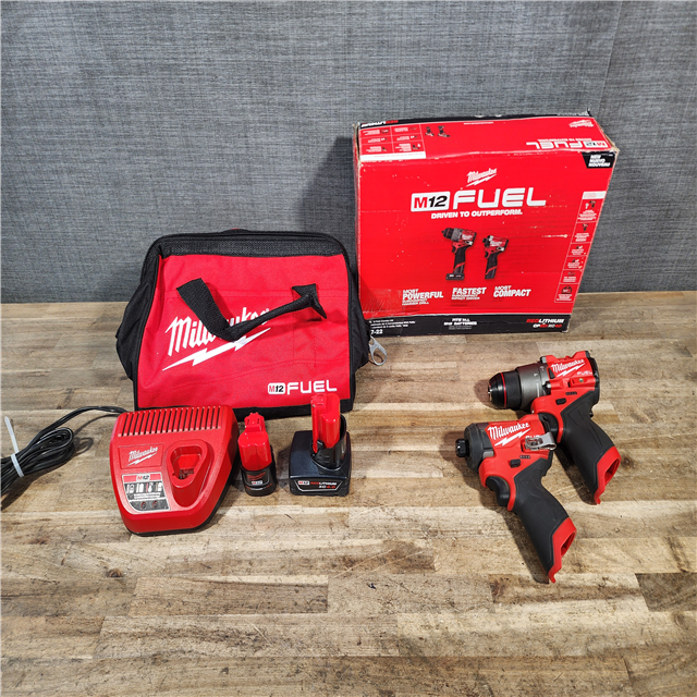 HOUSTON LOCATION - AS-IS Milwaukee FUEL 12-Volt Lithium-Ion Brushless Cordless Hammer Drill and Impact Driver Combo Kit