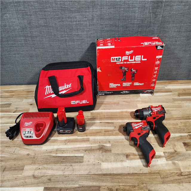 HOUSTON LOCATION - AS-IS Milwaukee FUEL 12-Volt Lithium-Ion Brushless Cordless Hammer Drill and Impact Driver Combo Kit
