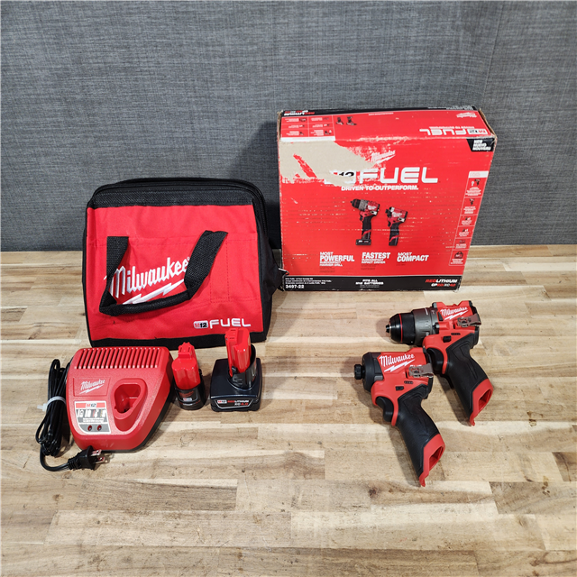 HOUSTON LOCATION - AS-IS Milwaukee FUEL 12-Volt Lithium-Ion Brushless Cordless Hammer Drill and Impact Driver Combo Kit