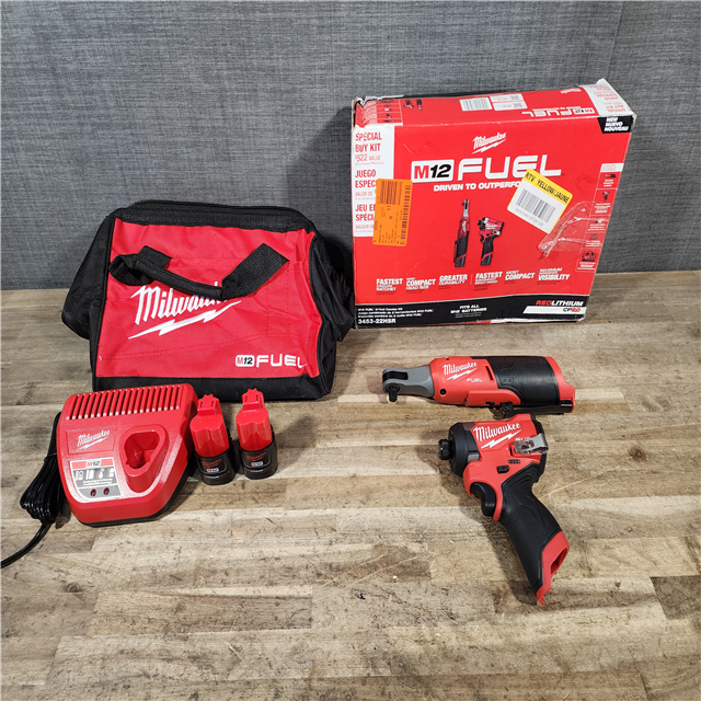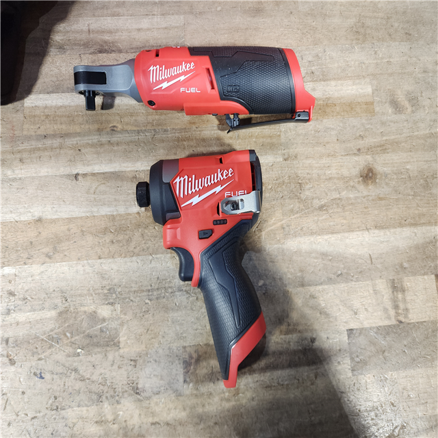 HOUSTON LOCATION - AS-IS Milwaukee FUEL 12V Lithium-Ion Cordless 3/8 in. Ratchet and 1/4 in. Impact Driver Kit
