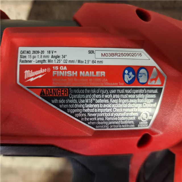 HOUSTON LOCATION - AS-IS Milwaukee FUEL 18-Volt Lithium-Ion Brushless Cordless Gen II 15-Gauge Angled Finish Nailer (Tool-Only)