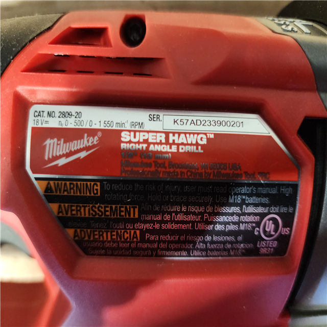 HOUSTON LOCATION - AS-IS Milwaukee FUEL 18V Lithium-Ion Brushless Cordless GEN 2 SUPER HAWG 1/2 in. Right Angle Drill (Tool-Only)