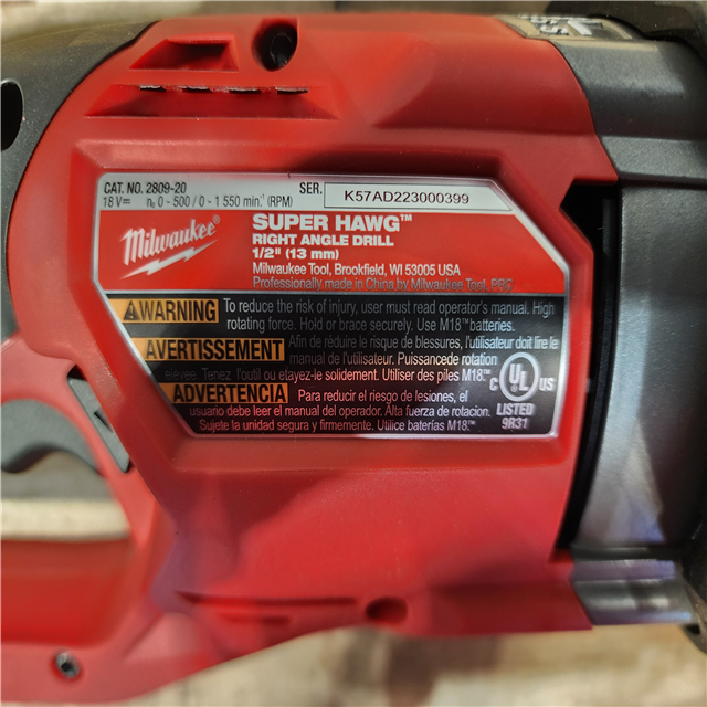 HOUSTON LOCATION - AS-IS Milwaukee FUEL 18V Lithium-Ion Brushless Cordless GEN 2 SUPER HAWG 1/2 in. Right Angle Drill (Tool-Only)
