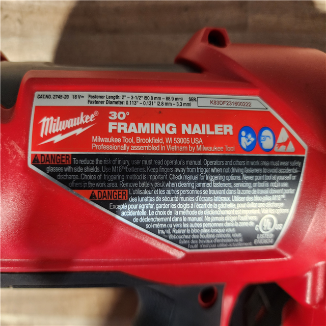 HOUSTON LOCATION - AS-IS Milwaukee FUEL 3-1/2 in. 18-Volt 30-Degree Lithium-Ion Brushless Cordless Framing Nailer (Tool-Only)