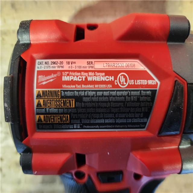 HOUSTON LOCATION - AS-IS Milwaukee FUEL18V Lithium-Ion Brushless Cordless Mid Torque 1/2 in. Impact Wrench w/Friction Ring (Tool-Only