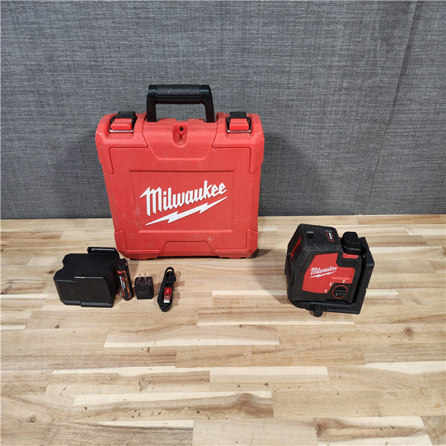 HOUSTON LOCATION - AS-IS Milwaukee Green 100 ft. Cross Line and Plumb Points Rechargeable Laser Level Kit