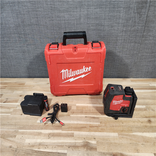 HOUSTON LOCATION - AS-IS Milwaukee Green 100 ft. Cross Line and Plumb Points Rechargeable Laser Level Kit