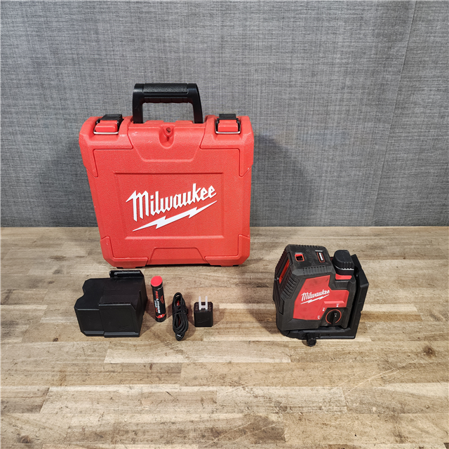 HOUSTON LOCATION - AS-IS Milwaukee Green 100 ft. Cross Line and Plumb Points Rechargeable Laser Level