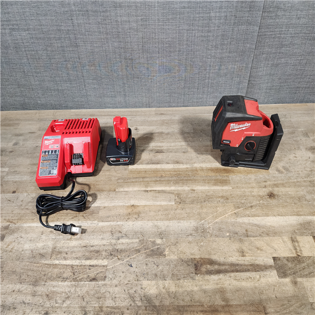HOUSTON LOCATION - AS-IS Milwaukee Green 125 Ft. Cross Line and Plumb Points Laser Level Kit