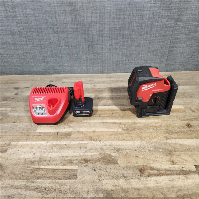 HOUSTON LOCATION - AS-IS Milwaukee Green 125 Ft. Cross Line and Plumb Points Laser Level Kit