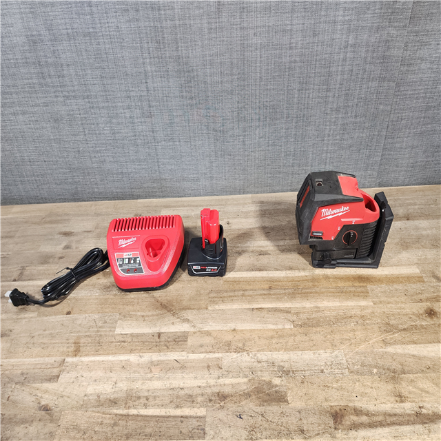 HOUSTON LOCATION - AS-IS Milwaukee Green 125 Ft. Cross Line and Plumb Points Laser Level Kit