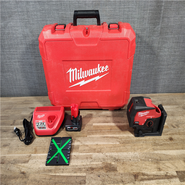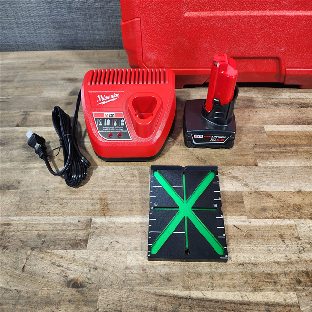 HOUSTON LOCATION - AS-IS Milwaukee Green 125 Ft. Cross Line and Plumb Points Laser Level Kit