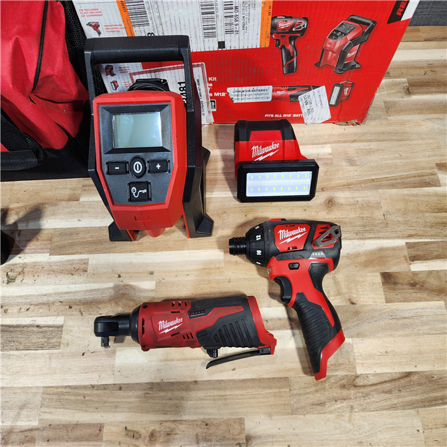 HOUSTON LOCATION - AS-IS Milwaukee M12 12V Lithium-Ion Cordless 4 TOOL Combo Kit