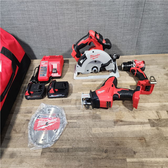 HOUSTON LOCATION - AS-IS Milwaukee M18 18-Volt Lithium-Ion Brushless Cordless Combo Kit (3-Tool) with 2-Batteries 1-Charger and Tool Bag