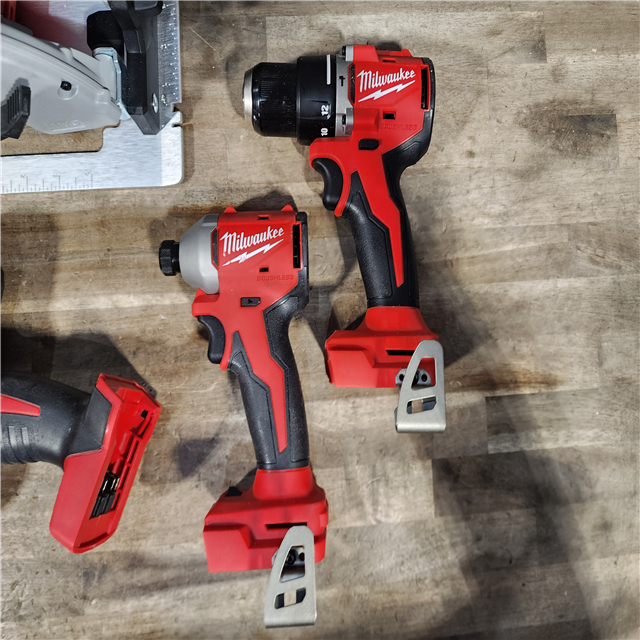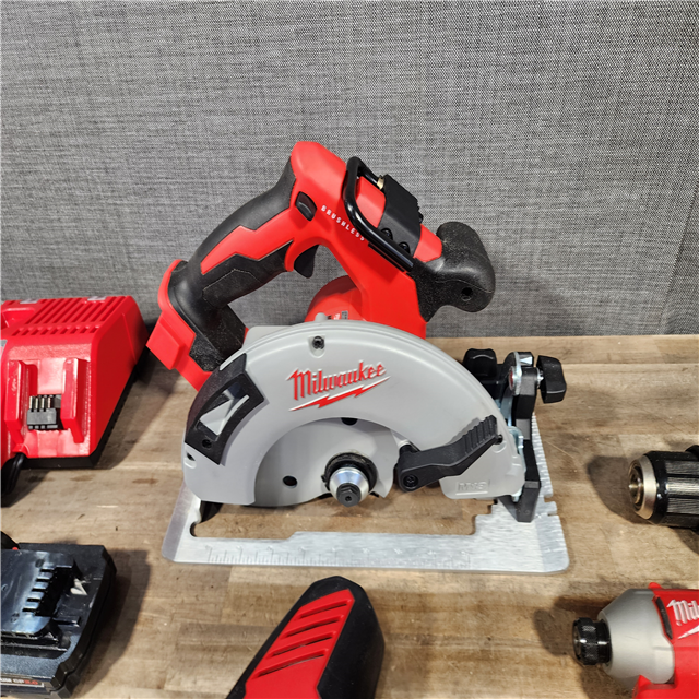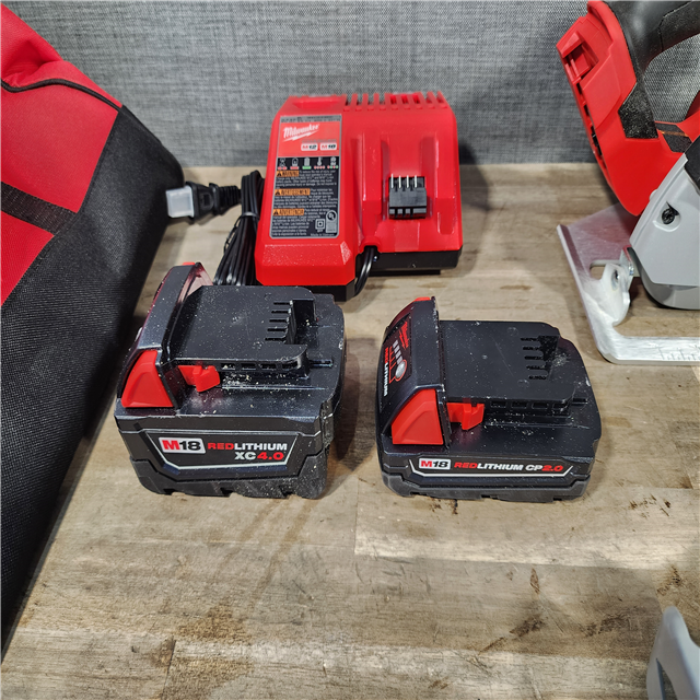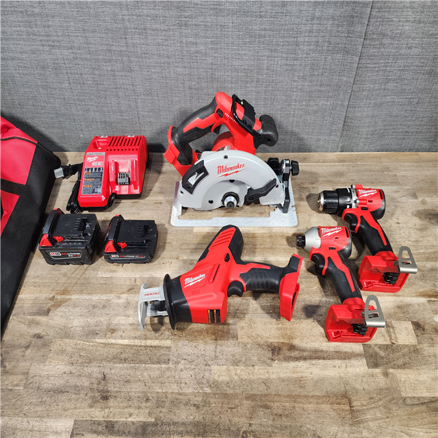 HOUSTON LOCATION - AS-IS Milwaukee M18 18-Volt Lithium-Ion Brushless Cordless Combo Kit (4-Tool) with 2-Batteries 1-Charger and Tool Bag