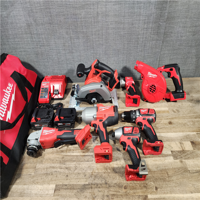 HOUSTON LOCATION - AS-IS Milwaukee M18 18-Volt Lithium-Ion Cordless Combo Kit (7-Tool) with (2) Batteries Charger and Tool Bag