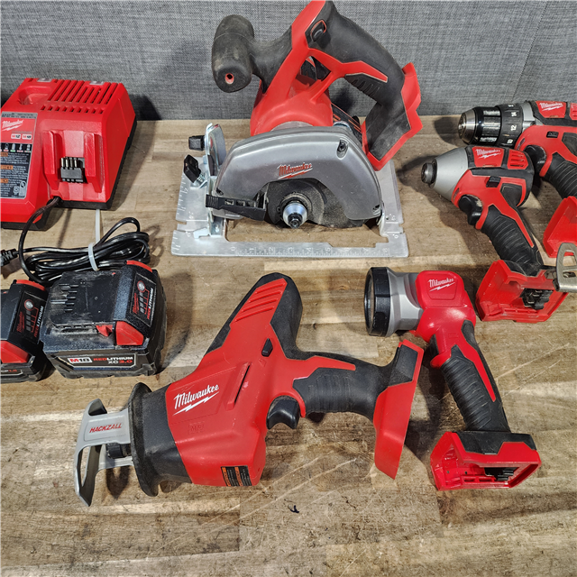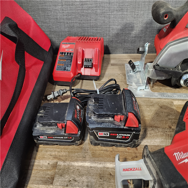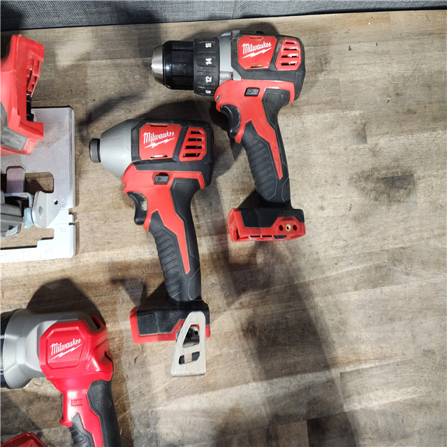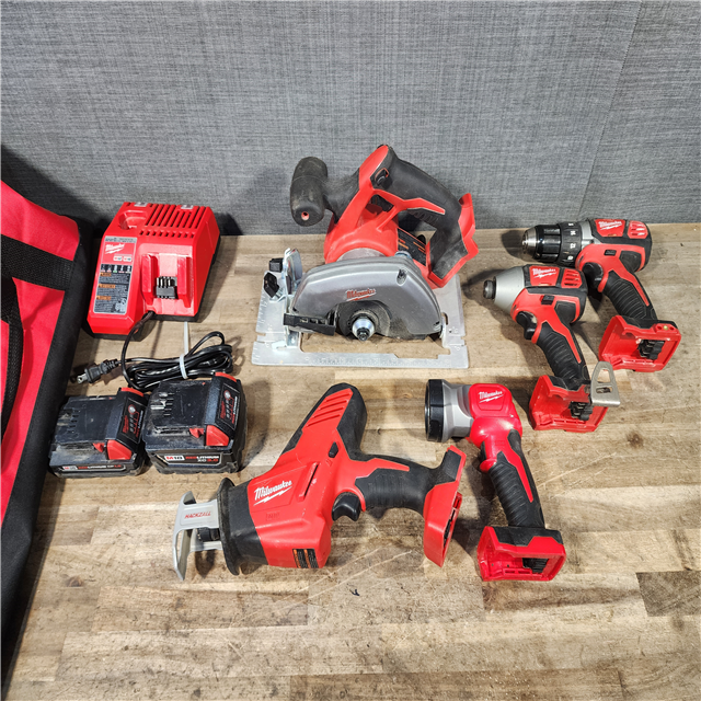 HOUSTON LOCATION - AS-IS Milwaukee M18 18-Volt Lithium-Ion Cordless Combo Tool Kit (5-Tool) with (1) 3.0Ah and (1) 1.5Ah Battery (1) Charger (1) Tool Bag