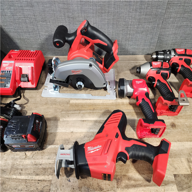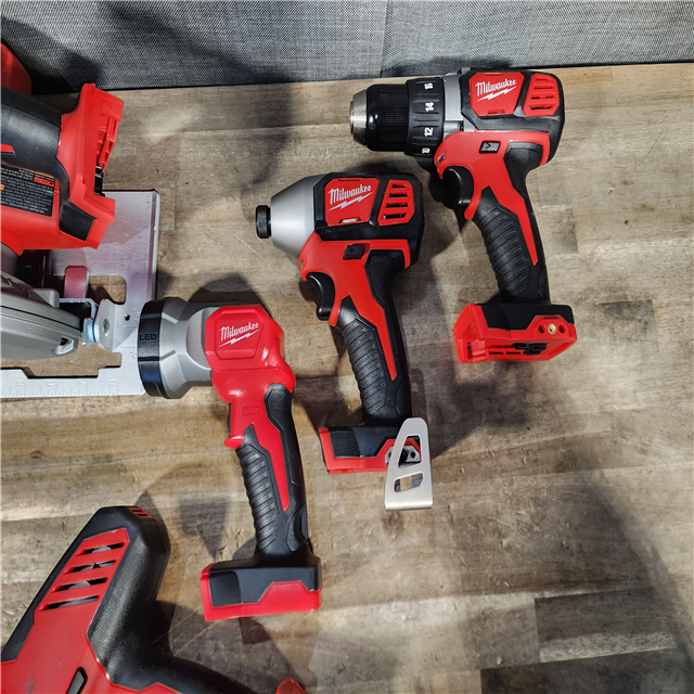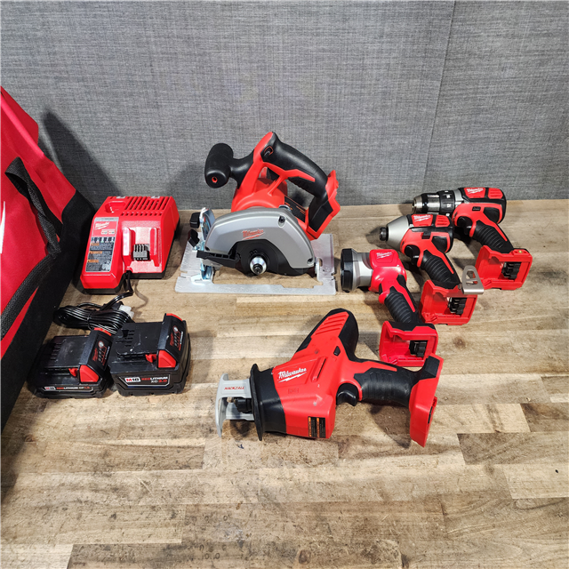 HOUSTON LOCATION - AS-IS Milwaukee M18 18-Volt Lithium-Ion Cordless Combo Tool Kit (5-Tool) with (1) 3.0Ah and (1) 1.5Ah Battery (1) Charger (1) Tool Bag