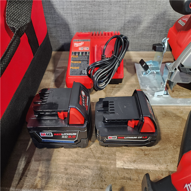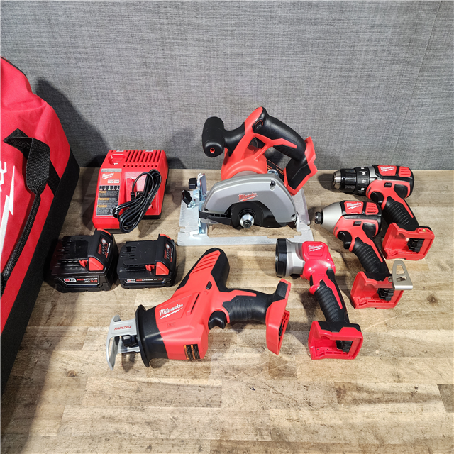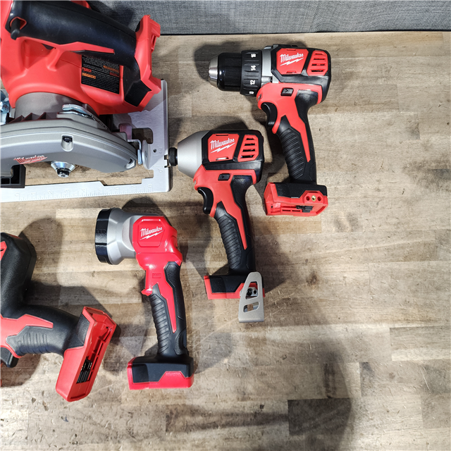 HOUSTON LOCATION - AS-IS Milwaukee M18 18-Volt Lithium-Ion Cordless Combo Tool Kit (5-Tool) with (1) 3.0Ah and (1) 1.5Ah Battery (1) Charger (1) Tool Bag
