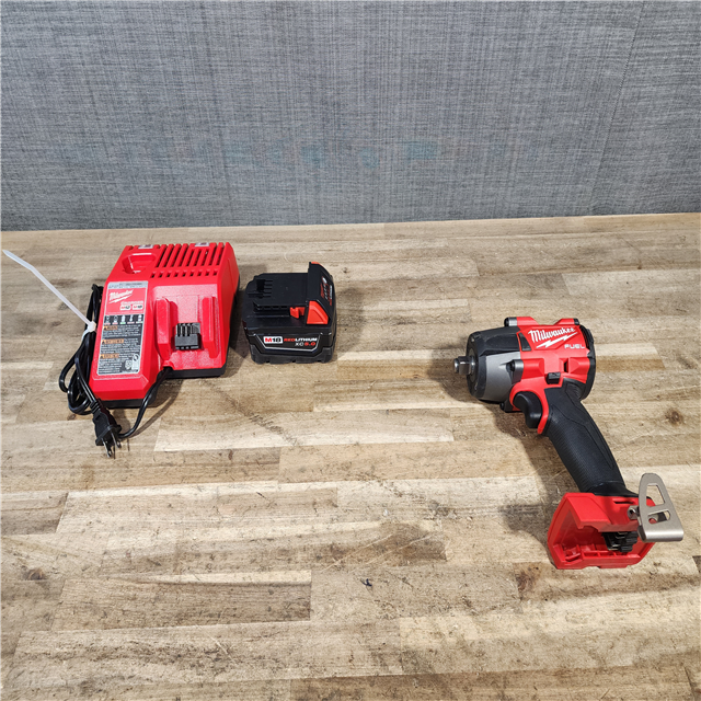 HOUSTON LOCATION - AS-IS Milwaukee M18 18V Fuel 1/2 Mid-Torque Impact Wrench Cordless Lithium-Ion Brushless with Friction Ring W/ BATTERY & CHARGER